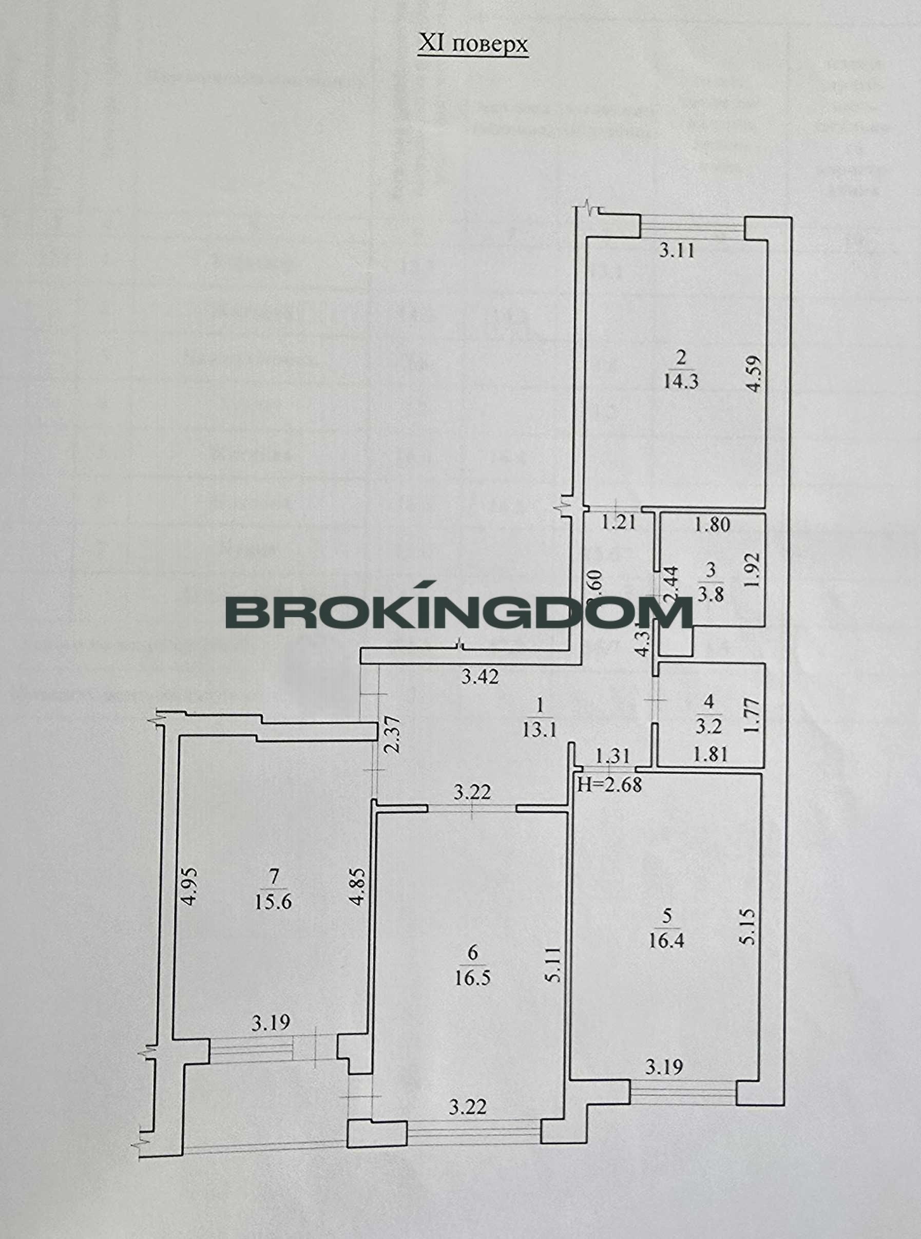 кухня 15,6 кв.м, 3 окремі кімнати, 1 балкон,