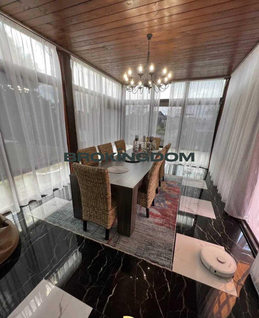 • Планування: 3 поверхи, велика кухня-вітальня з панорамним склінням, 5 спалень, санвузли на кожному поверсі.