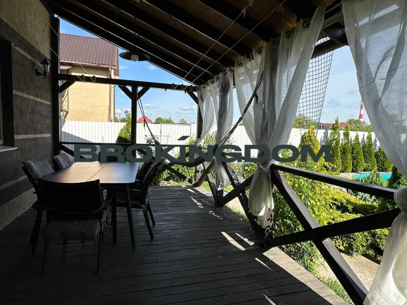 На території довкола будинку є басейн 7 метрів, крите паркування на 2 авто з антресоллю, свердловина, плодові дерева та багато троянд різних сортів. Будинок знаходиться в тихій зоні.