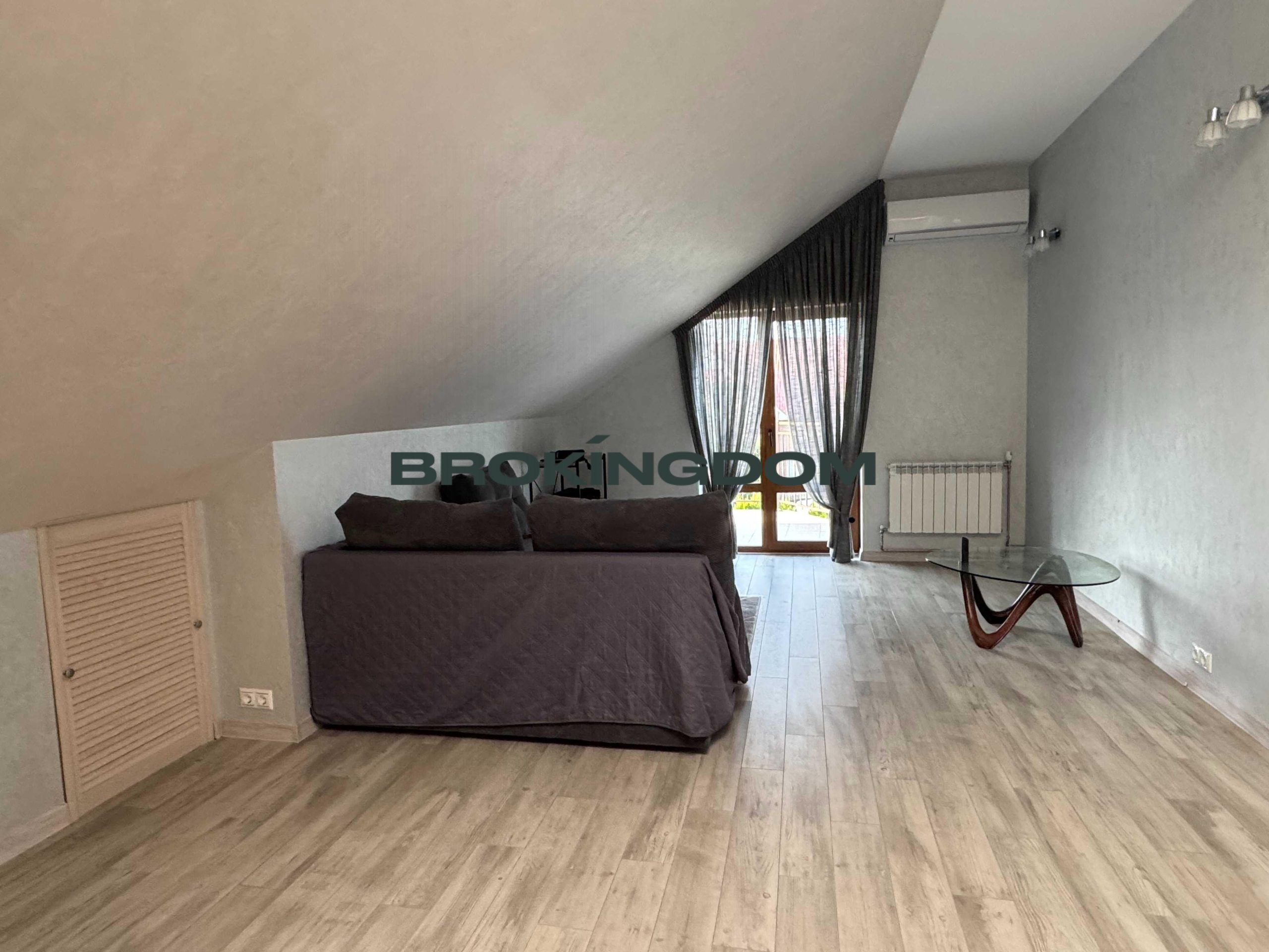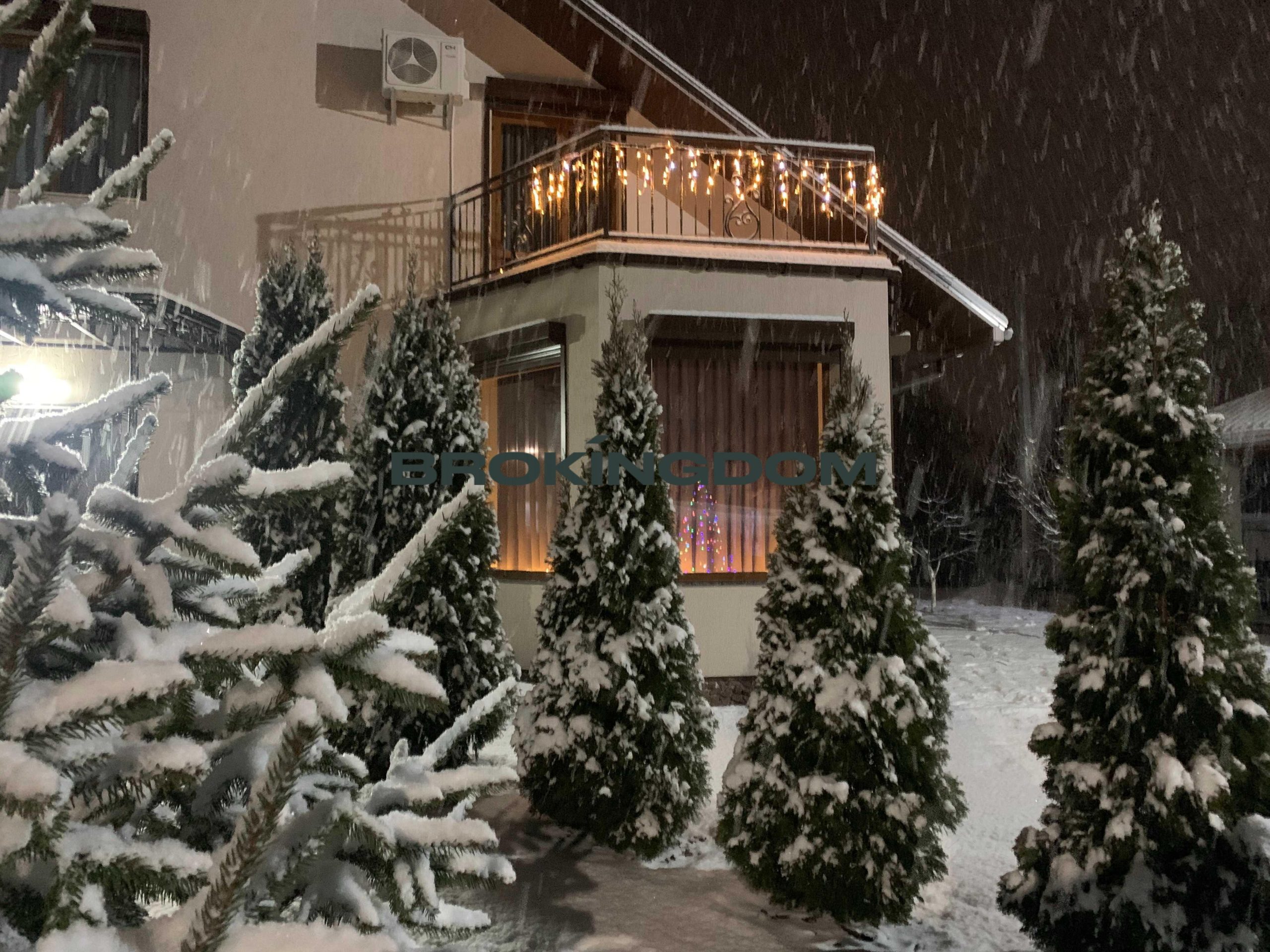 Зробили вихід під електрокотел, за бажання можна підключити. Також стоять два потужні інверторні кондиціонери С&Н. Можна використовувати як для охолодження, так і на опалення. На всіх вікнах у будинку встановлені електричні металеві ролети, що закриваються з пульта.