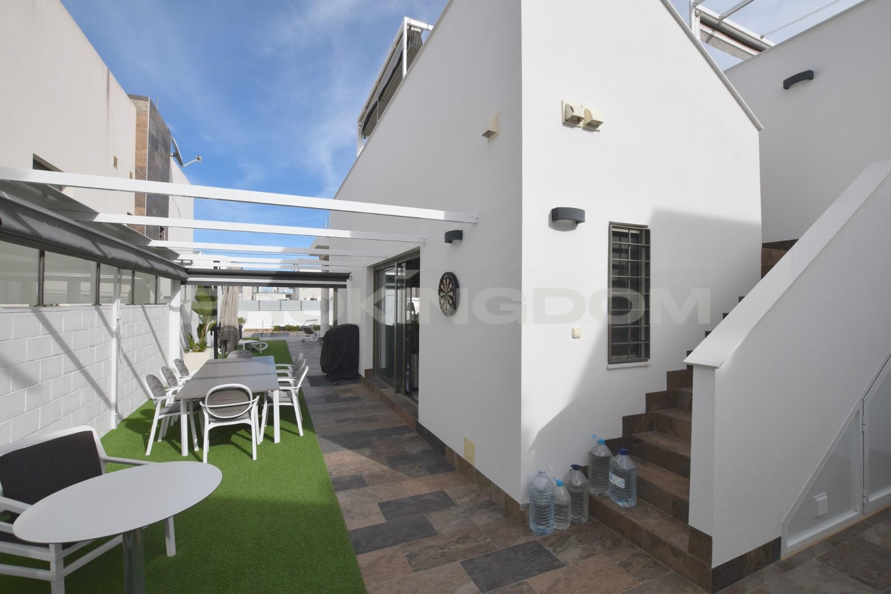 This property is built to the highest standard and includesall furniture inside and out, private heated swimming pool, hot/cold vented air conditioning, modern kitchen with fitted appliances, electric shutters throughout, all lighting and arooftop solarium complete with jacuzzi and fitted pergolas.