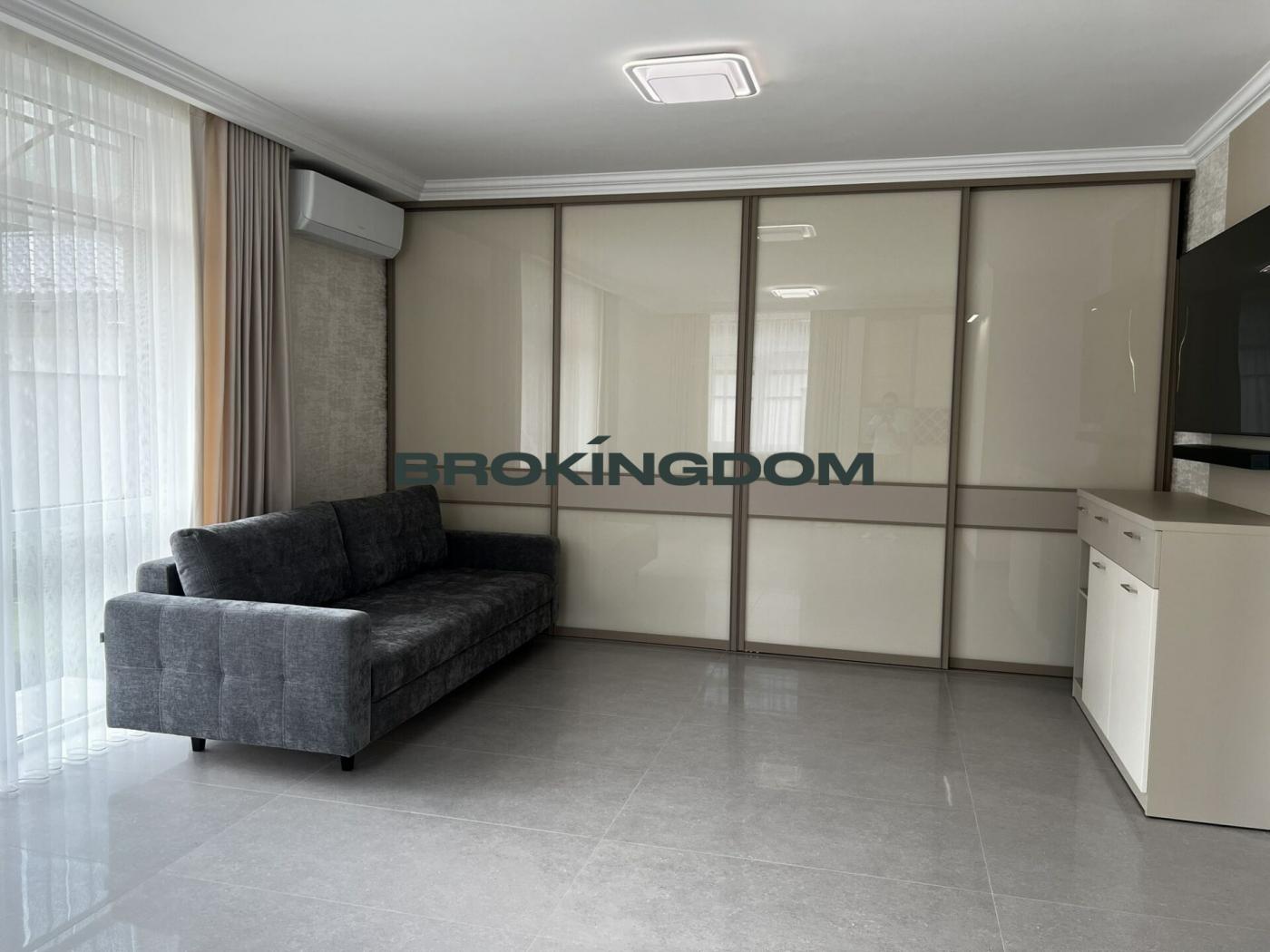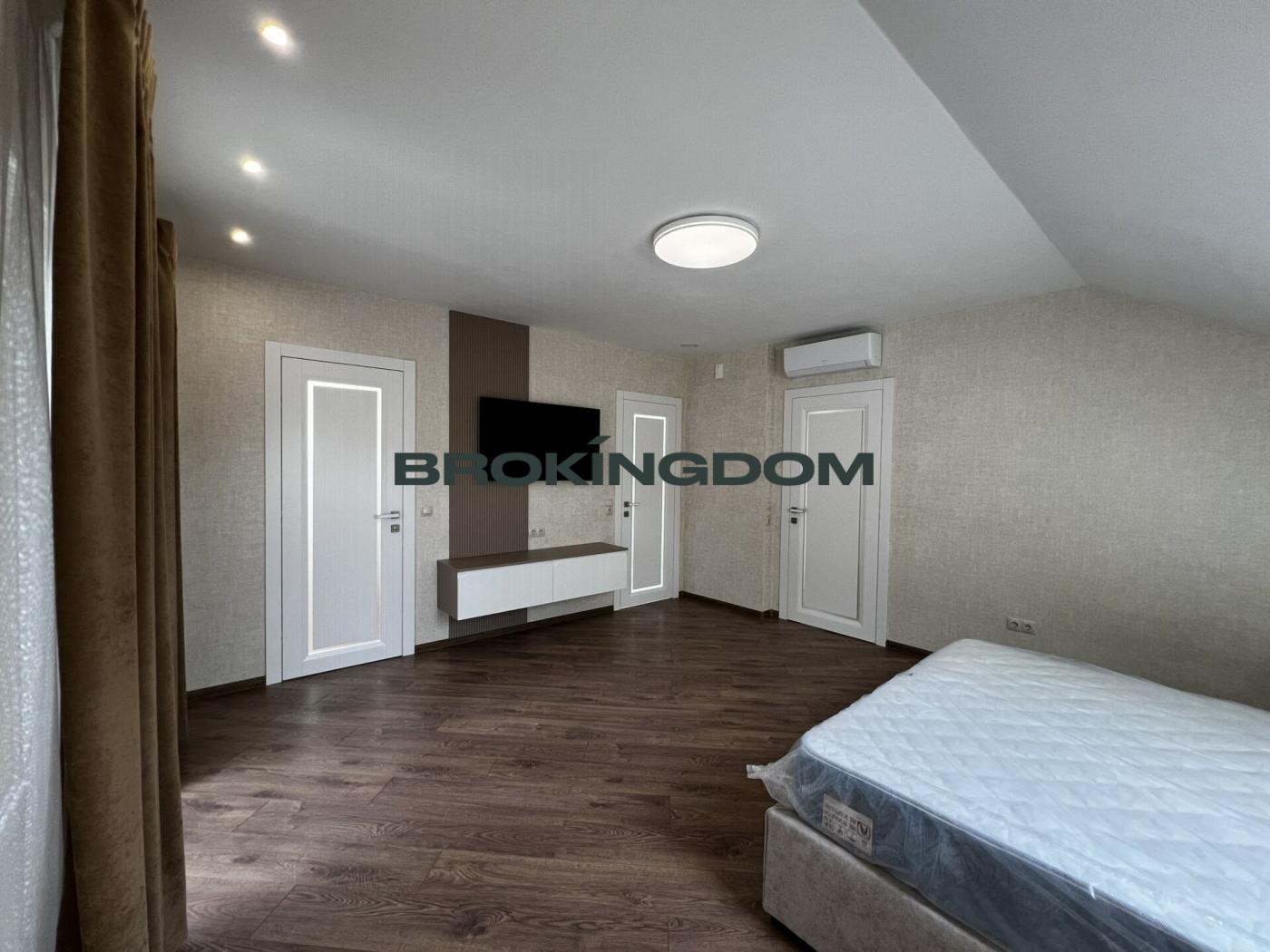 Будинок практично повністю облаштований меблями. Також у котеджі встановлені такі декоративні елементи як карнизи, штори та тюлі. Тканини, з яких пошито штори та тюлі, володіють повітропроникністю та не накопичують пил .